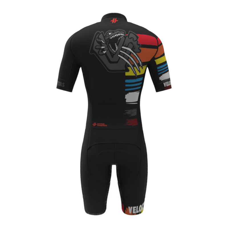 The SS Sleeve Race Day Suit with its detached front design is a must have tool for road, mountain, or cross racers. Offering the aero advantages of a skinsuit with the comfort and convenience of a jersey. 6-8hr Echelon Chamois, laser cut silicone grip cuffs, vented armpit, 2 rear pockets, durable flat stitch construction.