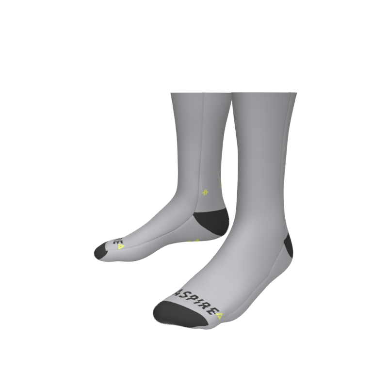 Full Color/Full Coverage full performance socks with your custom design permanently printed right into the fabric! Black reinforced heel and toe box. Polyester and a special stretch yarn wrapped in polyester for an incredible color matching end product that allows for an incredibly unique and creative sock!