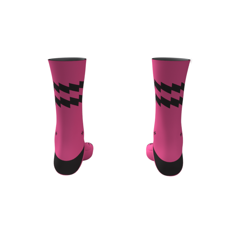 Full Color/Full Coverage full performance socks with your custom design permanently printed right into the fabric! Black reinforced heel and toe box. Polyester and a special stretch yarn wrapped in polyester for an incredible color matching end product that allows for an incredibly unique and creative sock!
