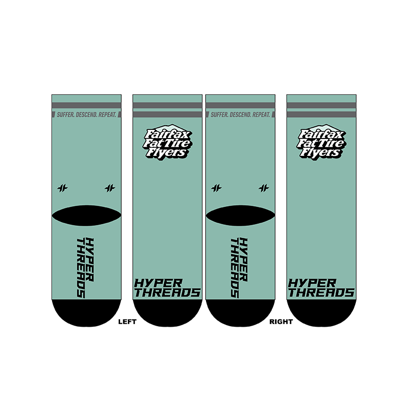 Full Color/Full Coverage full performance socks with your custom design permanently printed right into the fabric! Black reinforced heel and toe box. Polyester and a special stretch yarn wrapped in polyester for an incredible color matching end product that allows for an incredibly unique and creative sock!