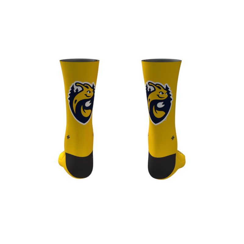 Full Color/Full Coverage full performance socks with your custom design permanently printed right into the fabric! Black reinforced heel and toe box. Polyester and a special stretch yarn wrapped in polyester for an incredible color matching end product that allows for an incredibly unique and creative sock!